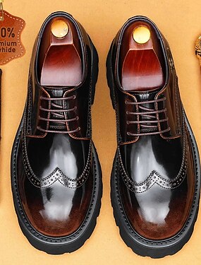Oxfords masculinos de couro vermelho e preto com acabamento brilhante – elegantes e estilosos para jantares de Natal e ocasiões festivas
