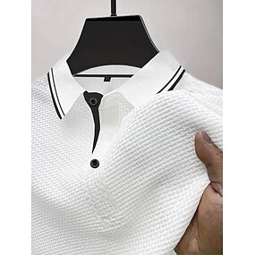 Homens Pólo Polo de seersucker Ice Silk Casual O negócio gola pólo com nervuras Manga Curta Moda Básico Côr Sólida Botões Verão Primavera & Outono Normal Azul Céu Preto Branco Azul Marinho Cinzento