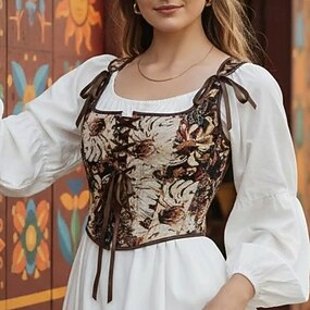 Medieval Renascentista Cottagecore Corpete Viking Camponês Cordões Floral Jacquard Fantasia Mulheres Celta Fantasia Dia Das Bruxas Carnaval Espetáculo LARP Ren Faire Adulto Corpete