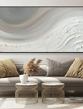 Pintura abstrata a óleo sobre tela, pintura feita à mão, arte moderna, grande formato, contemporânea, tela texturizada pintada à mão, cores neutras.