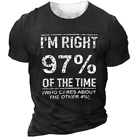 Camiseta Gráfica Masculina Engraçada 'Estou Certo 97% do Tempo (Quem se Importa com os Outros 4%)' Trocadilho Sarcástico de Manga Curta