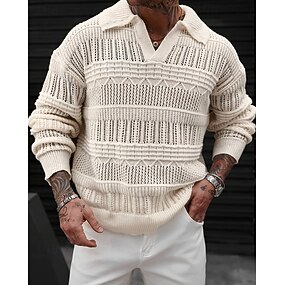 Homens Pulôver suéter Suéter de malha Estriado Tricotar Tops regulares Tricotado Tecido Lapela Moda Básico Férias Roupa Diária Roupa Outono & inverno Azul Verde S M L