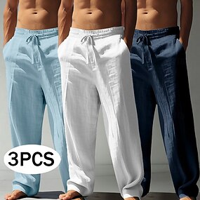 Homens Calças de linho Calças Calça verão Calças largas Calças de praia Com Cordão Cintura elástica Perna reta Côr Sólida Leve Respirável Comprimento total Casual Diário Ao ar livre Férias Estilo