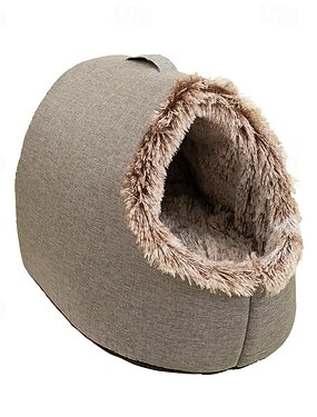 cama de pelúcia em forma de caverna para gatos de interior. &Casinha para cães pequenos com forro macio, cama removível autoaquecida com base antiderrapante e abrigo lavável para gatos.