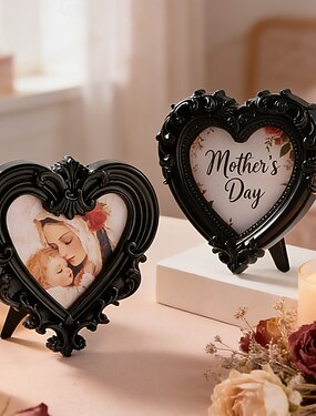 Moldura em forma de coração de resina preta para o Dia das Mães, expositor de fotos 3D ornamentado, decoração de mesa, decoração de festa, adereço fotográfico, presente para a mãe
