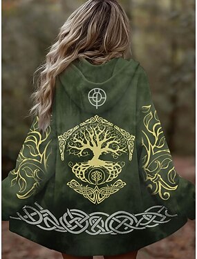 Mulheres Moletom com zíper Gráfico Geométrica Tribal Punk Ativo Vintage Manga Longa Com Capuz Tops regulares Casual Casa Dia a Dia Azul Roxo Marron Verde Outono Inverno
