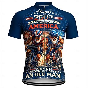 250º Aniversário da América Dia da Independência Masculino Camisa para Ciclismo Jersey em declive Nunca subestime um velho com uma bicicleta. Manga Curta Moto Camisa / Roupas Para Esporte Camiseta
