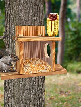 Alimentador de esquilos, estrutura de madeira resistente montada na parede, cantil para esquilos de quintal, caixa de alimentação de esquilos de madeira à prova de umidade para jardim, árvore
