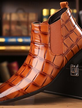 Botas Chelsea masculinas com estampa de crocodilo marrom – botins de couro sintético com painéis laterais elásticos, botas sociais estilo vintage para uso no escritório e à noite