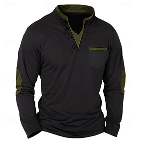 Homens Camiseta decote em V T-shirt Camisa de manga longa Camisas masculinas com reforço nos cotovelos Manga Longa Retalhos Diário Casual Estilo de rua Moda duas peças falsas Decote V Ao ar livre Rua
