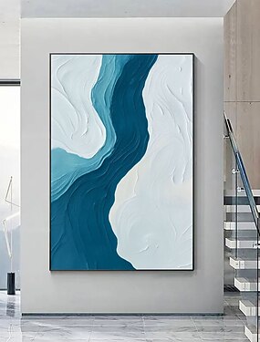 Pintura de parede texturizada 3D pintada à mão, arte abstrata azul em tela, decoração abstrata verde para sala de estar, parede minimalista ao fundo do sofá, pintura nórdica para quarto.