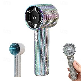 Ventilador portátil de mão com strass, ventilador pessoal de resfriamento, gadgets refrescantes, display LED, recarregável, ideal para férias, caminhadas, viagens, camping e atividades ao ar livre.