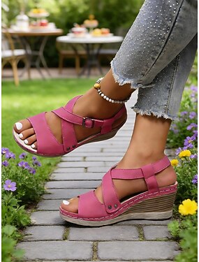 sandálias femininas peep toe com recortes e salto anabela, fivela ajustável, calçados confortáveis para trabalho, passeios casuais e viagens