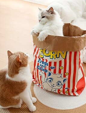 Brinquedo resistente e divertido para animais de estimação: um saco de pipoca em formato de desenho animado para entreter e brincar com seu gato ou cachorro - sem necessidade de pilhas.