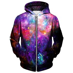 Homens Galáxia Estampas Abstratas Moletom Moletons Roupa de rua Básico Casual Grande e Alto Manga Longa Com Capuz Desportos e Ar livre Diário Esportes Feriado Roxo Zíper Imprimir Primavera & Outono