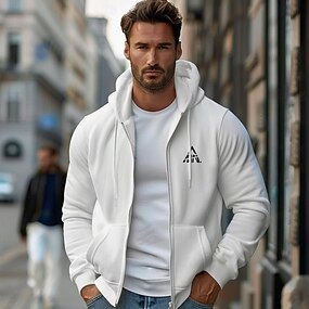 Homens Moletons com zíper Preto Branco Com Capuz Gráfico Geométrica Roupa de Esporte Arte Gráfica Casual Roupa Moletons Moletons Manga Longa
