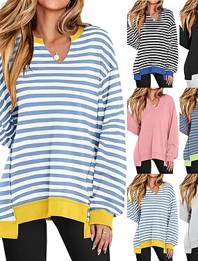 Mulheres Riscas Moletom de malha Tops casuais Outono Manga Longa Roupa Esportiva Da Moda Exterior Viagem Esportivo Vermelho Vinho Preto Azul Roupa de esporte Roupas Esportivas
