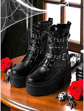 Botas femininas pretas de couro sintético até o joelho, plataforma alta, cano elástico e salto grosso, estilo punk gótico para noites rave e looks de outono, combinam com minissaias