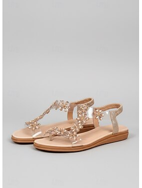 sandálias rasteiras femininas com strass floral - sapatos confortáveis de verão casuais com tiras em T para uso diário e encontros românticos durante o dia