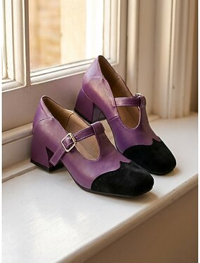 Saltos T-strap de seda roxa femininos - sapatos de dança de bico fechado inspirados nos anos 1920 vintage Gatsby para casamentos festas de coquetel e eventos formais