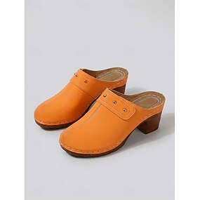 Tamancos mule femininos verdes com salto bloco – modelos confortáveis de couro sintético com rebite. &Detalhes costurados à mão, sapatos casuais de bico fechado para trabalho e viagens. &uso diário