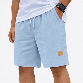 Homens Calção Shorts de linho Shorts de verão Shorts de praia Com Cordão Cintura elástica Cor Única Conforto Respirável Comprimento do joelho Diário Ao ar livre Feriado Moda Casual Azul Preto Sem
