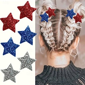 6 peças grampos de cabelo para mulheres, 4 de julho, vermelho, branco, azul, estrela, acessórios de cabelo com glitter, grampo de cabelo patriótico, dia da independência, grampos de cabelo lisos para