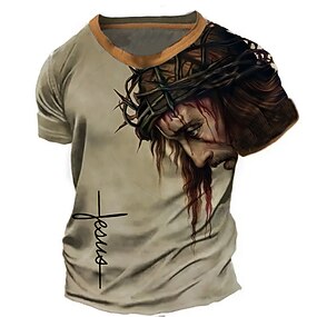 Homens Gráfico Fé Camiseta camisetas cristãs Manga Curta Camiseta Impressão 3D Gola Redonda Camisa Vintage Moda Designer Ao ar livre Diário Esportes Azul Verde cáqui Primavera Verão Roupa S M L XL