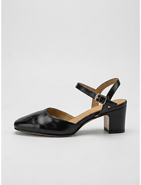Sapatos femininos de bico quadrado – scarpins de couro sintético com recortes artísticos e salto gatinho para ambientes de trabalho criativos