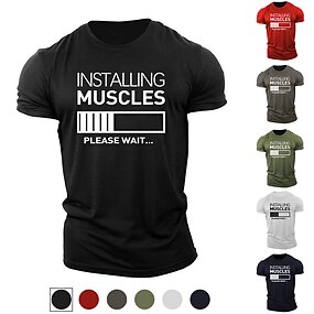 Camiseta Engraçada para Homens - "Instalando Músculos Por Favor Aguarde" Camiseta Gráfica para Treino e Fitness Manga Curta