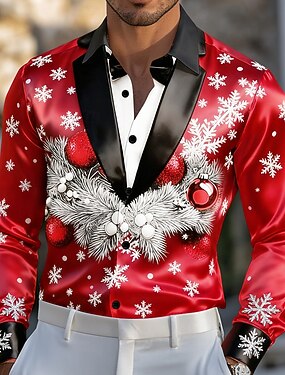 Natal Homens Fantasia de Natal Camisa de smoking estampada com gravata e terno Camisa Social Blusa de cetim Saia Manga Longa Moda Casual Ao ar livre Festa Feriado Primavera Outono Aberto para a