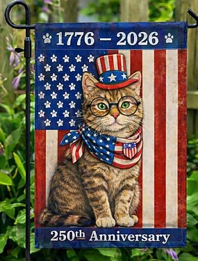 Bandeira comemorativa do 250º aniversário dos EUA, anos de liberdade americana, bandeira patriótica de gato para jardim, banner para quintal e casa para o 4 de julho.