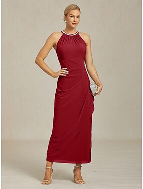 Mulheres Vestido Longo Vestido da bainha Elegante Convidado do casamento Coquetel Frufru Embelezado Fenda Côr Sólida Sem Manga Gola Redonda Vermelho