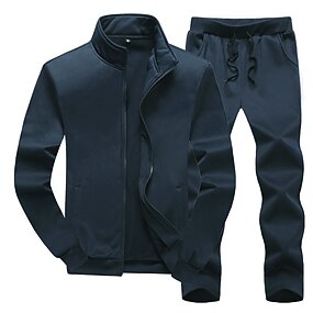 Homens Moletom Suéter Moletom Zip Jaqueta Fatos de jogging Vermelho Vinho Preto Branco Azul Marinha Cinzento Escuro Colarinho Clerical Tecido 2 Peças Desportos e Ar livre Esportes Streetwear Roupa de