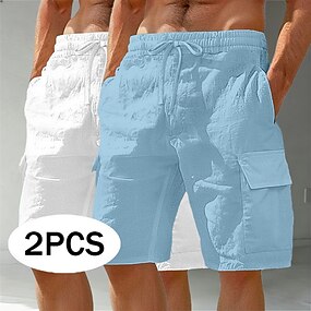 Homens Calção Shorts de linho Shorts de verão Shorts de praia Shorts casuais Com Cordão Cintura elástica Bolso multi Tecido Conforto Respirável Comprimento do joelho Casual Ao ar livre Praia Férias