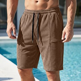 Homens Shorts de verão Shorts de praia Shorts casuais Tricô de cabo Shorts texturizados Com Cordão Cintura elástica Côr Sólida Conforto Comprimento do joelho Diário Ao ar livre Feriado Férias Estilo