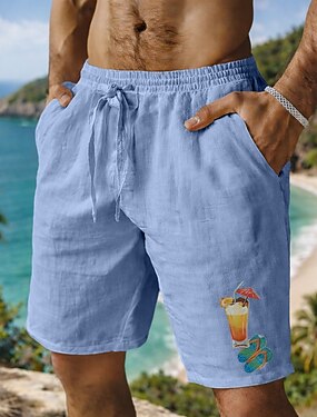 Homens Calção Shorts de linho Shorts de verão Shorts de praia Com Cordão Cintura elástica Gráfico Chinelos Bebida Leve Respirável Comprimento do joelho Casual Diário Praia Férias Havaiana Azul Preto