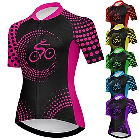 Mulheres Camisa para Ciclismo Poá Padrão Manga Curta Moto Camisa / Roupas Para Esporte Blusas com 3 bolsos traseiros Ciclismo de Montanha Ciclismo de Estrada Secagem Rápida Macio Tiras Refletoras