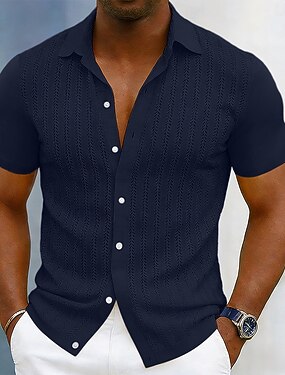 Homens Camisa Social camisa de verão camisa de botão Cardigã Branco Manga Curta Textura Moderno Lapela Casual Roupa Diária Buraco Roupa Moderno Contemporâneo Moderno Casual