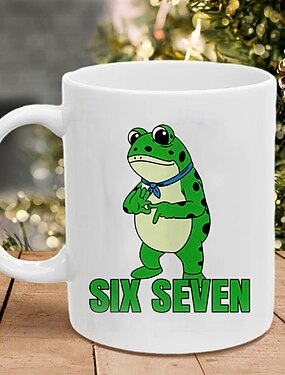 Caneca com meme do sapo seis e sete, caneca engraçada, caneca da moda, caneca de café, sapo fofo fazendo o sinal de 6 e 7 com a mão, presente moderno para adolescentes, homens e mulheres.