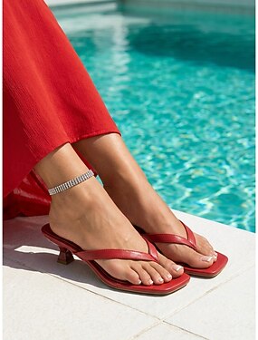 Sandálias femininas elegantes de salto baixo com estampa de crocodilo vermelha - mules chiques de bico quadrado para férias em hotéis de luxo, relaxar à beira da piscina e jantares em resorts de verão.