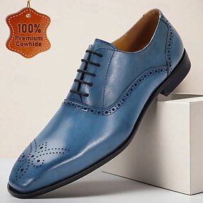 Sapatos sociais brogue masculinos em couro bovino legítimo azul – sapatos clássicos com cadarço para eventos formais, negócios e casamentos
