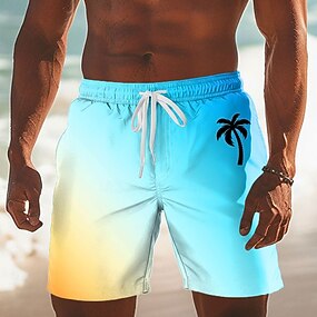 Homens Coqueiro Cor gradiente Plantas Tropicais Calção Justo de Natação Shorts de Natação Bermuda de Surf Cintura Média Havaiana férias na praia Bolsos laterais Forro de malha Cintura elástica com