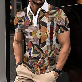 Homens Golf Listras Gradientes Camisas Polo Waffle Camisa de golfe Manga Curta Camisas polo Camisas de colarinho Roupa de Esporte Casual Ao ar livre Roupa Esportiva Roupa Diária Impressão 3D Botões