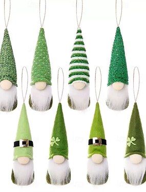 Conjunto de 4/8 enfeites de gnomos para pendurar, perfeitos para o Dia de São Patrício - decoração festiva irlandesa de primavera para interiores, com folhas verdes em feltro e poliéster. Não requer