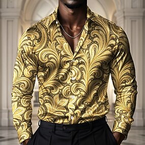 Homens Saia camisa de botão camisa de colarinho Poá Casamento Ao ar livre Preto Branco Vermelho Azul Marinha Manga Longa Aberto para a Lateral Verão Primavera Roupa Imprimir