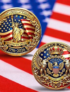 Moeda comemorativa do 250º aniversário dos EUA (1776-2026), item colecionável patriótico do semiquincentenário, com o desenho "Nós, o Povo" e a águia-careca, presente histórico para a celebração da independência.