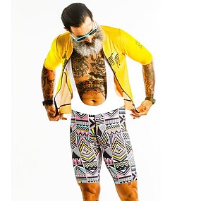 Homens Camisa com Bermuda Bretelle Manga Curta Ciclismo de Montanha Ciclismo de Estrada Verão Amarelo Geométrica Moto Tapete 3D Secagem Rápida Bolso Traseiro Pavio Humido Respirável Elastano Esportes