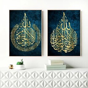 2 peças de arte de parede islâmica imprime presente islâmico cartaz de caligrafia árabe decoração de casamento muçulmana pintura em tela sala de estar decoração de casa sem moldura