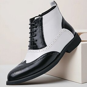 Botas oxford pretas e brancas masculinas com design de bico fino, sapatos sociais bicolores para festas de Gatsby, apresentações no palco e trajes de escritório